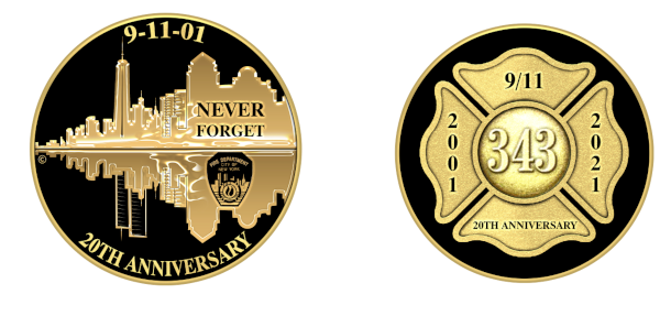 Copyrighted design by firefighters, this is a beautiful 2" coin, 3D on both sides, made from solid brass then plated in gold with a black background